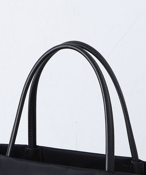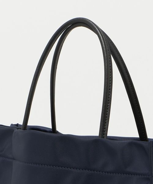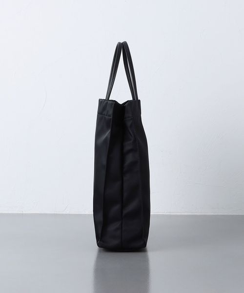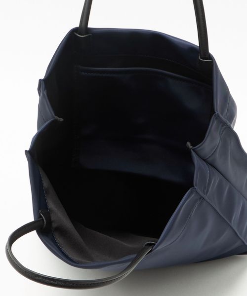 光沢のあるナイロン素材を使用したシンプルなトートバッグ。