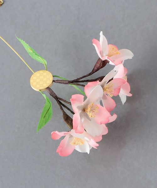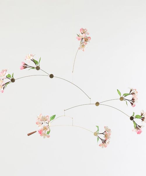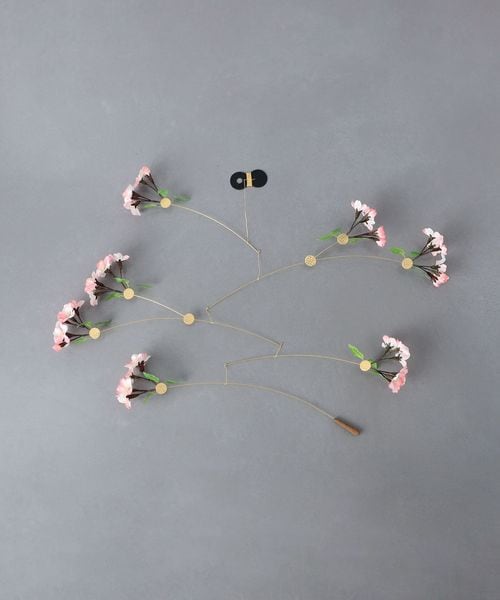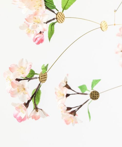 ひな人形に彩りを添える造花技術を使ってつくられた、優美な桜のモビール。