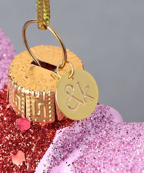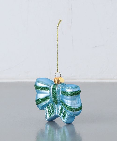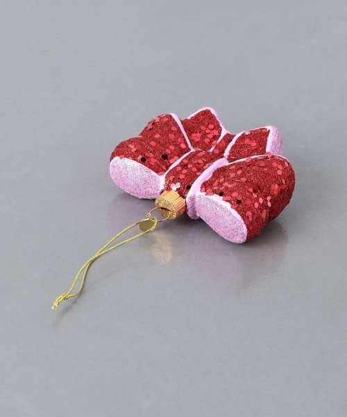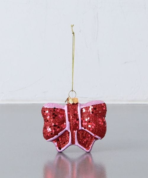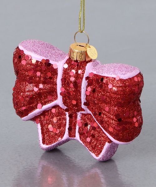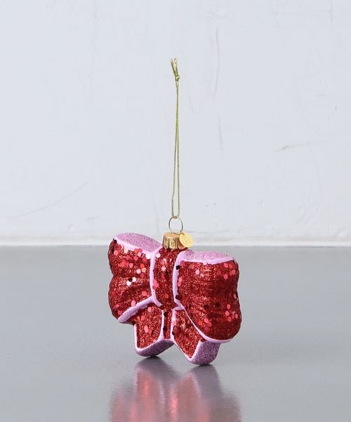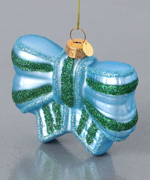 キラキラ輝く仕上げで、夕方の光の中で美しく輝き、ツリー全体を明るくしてくれるリボンモチーフのオーナメント。