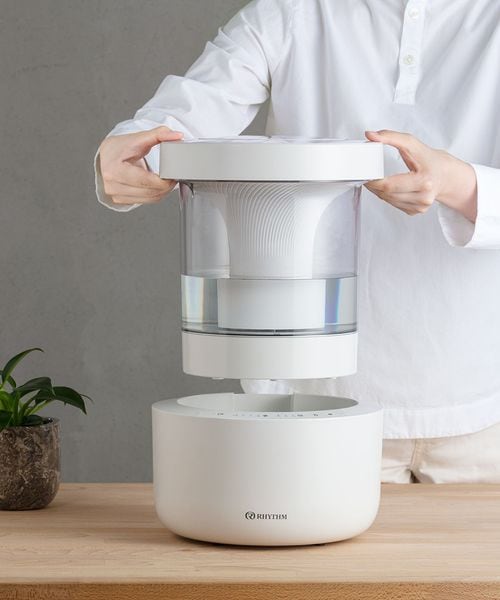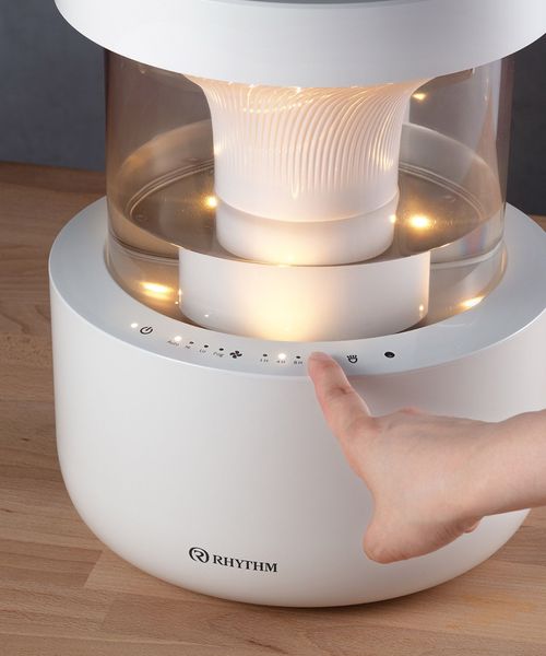シルクのようなきめ細やかな霧で部屋を加湿し、暖色のあたたかなあかりがタンク内と加湿で生み出される霧を美しく演出します。