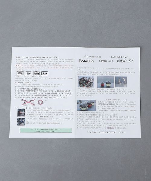 新潟県柏崎市に工房を構える「クラフト・ユー」は、 代表の徳間保則(とくまやすのり)氏が耐熱ガラスメーカーでの経験をいかし、1991年に独立して立ち上げたブランド。