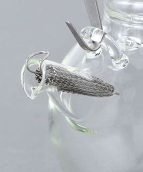 茶こしは注ぎ口に差しこむワイヤー製の茶こしです。