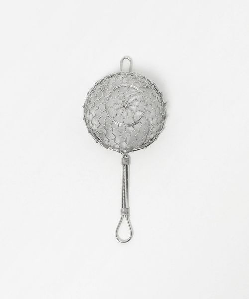 “菊出し”という菊の花の模様に編む技法と、亀甲編みを組み合わせて編んだ茶こしです。