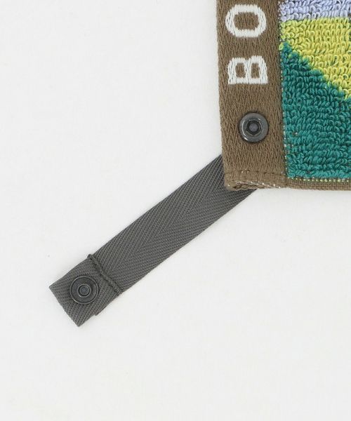 生地には抗菌加工を施し、さっと掛けることができるループ付きで、ループとドットボタンを留めると簡易的なスタイとして使うことも可能です。