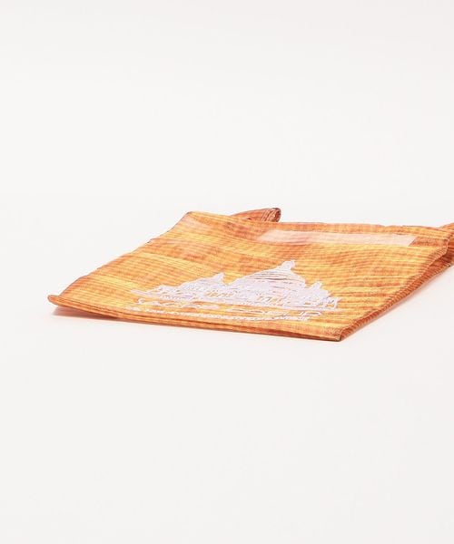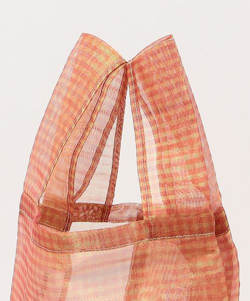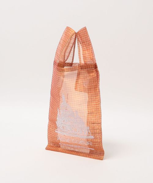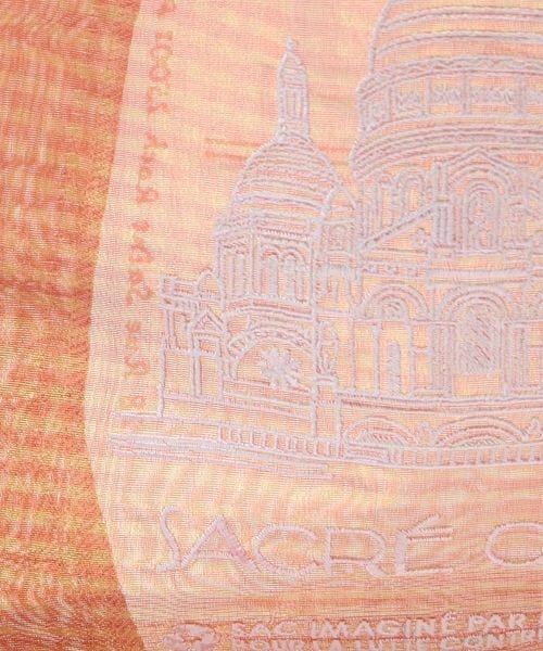 オレンジとイエローのギンガムチェック柄にサクレ・クール寺院のモチーフが刺繍されたオーガンジー素材のトートバッグ。