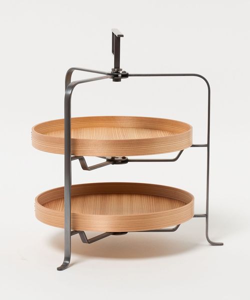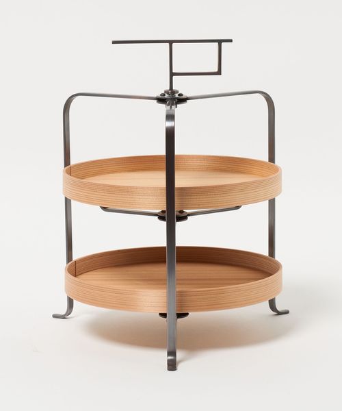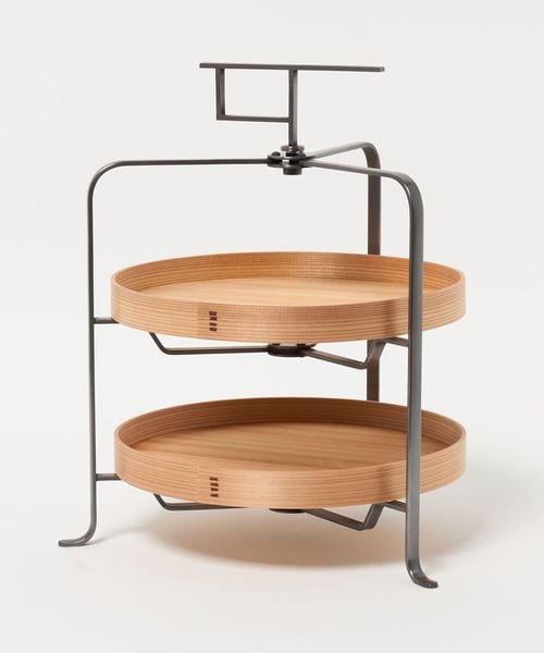 杉丸盆2枚が付属した銅製のアフタヌーンティースタンド