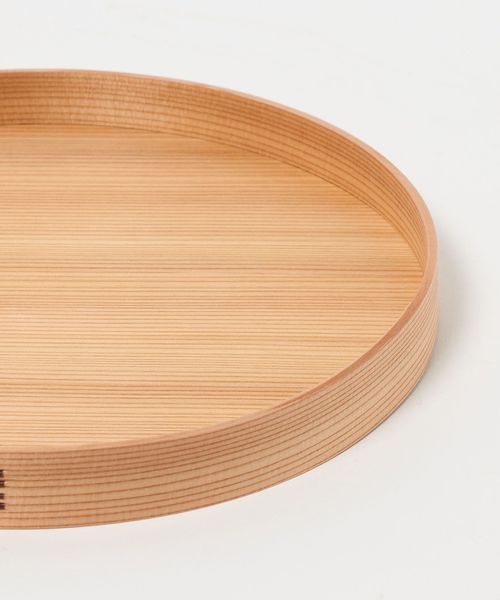 丸盆は職人が一つ一つ手作業で製作し、木のやわらかい部分を磨きながら削り落とし、木目を美しく浮き上がらせる加工「うづくり」で仕上げられています。