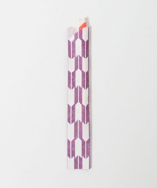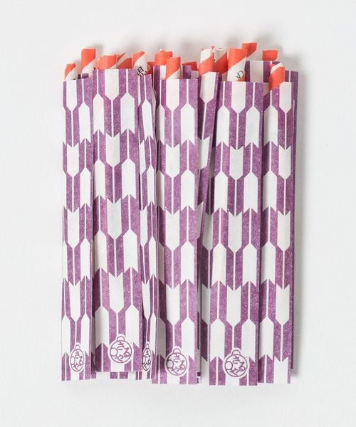 矢羽根柄の袋に黒文字楊枝が入っています。