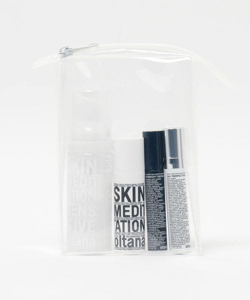 敏感肌用の洗顔フォーム、化粧液、デイクリーム、ナイトクリームといったSKIN-MEDITATIONラインの製品がセットになったトラベルキット。