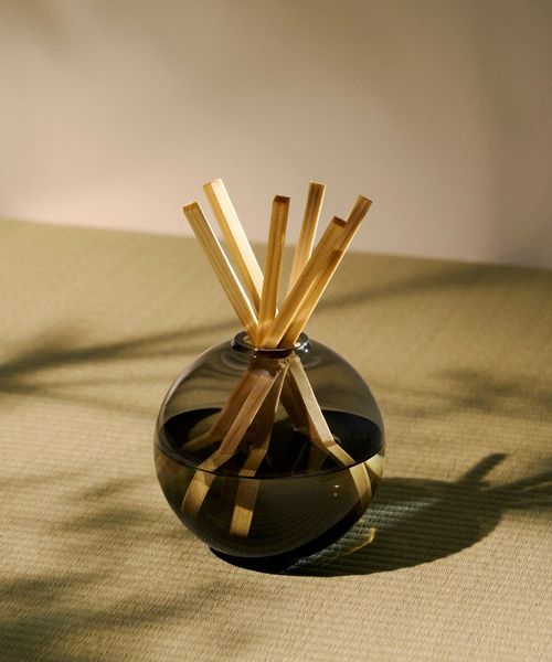 ・ディフューザーには8本の天然ヒノキリードスティックが付属され、約4〜5ヶ月間香りが持続します。空気の流れがあるところに置くと香りが広がりやすいです。