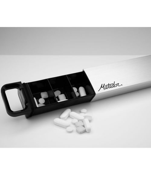 耐久性のあるアルミニウム製のシェルは、錠剤などを水気から保護します。