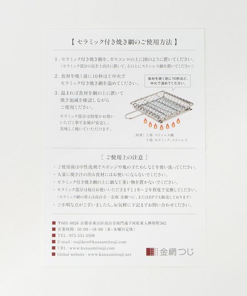 <金網つじ>手編み手付きセラミック付き焼き網 小