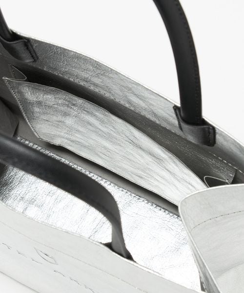 定番ロゴトート(対象品番:19896992519)を縫うことのできるペーパー素材に変えて、軽やかなトートバッグに仕上げました。