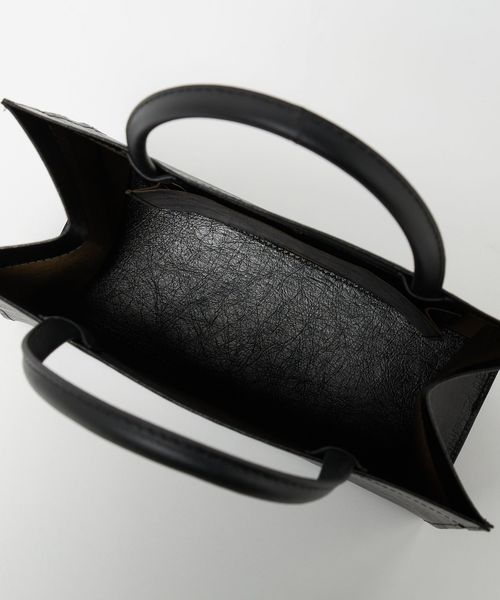ハンドル部分は牛革を使用し、小物の収納に便利な内ポケットを備えたデザイン。