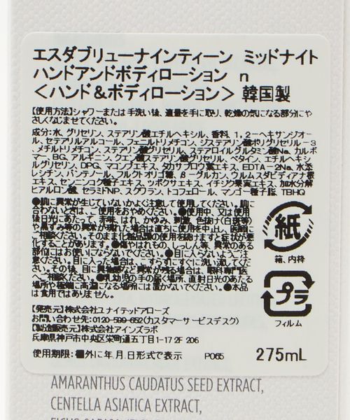 品名:SW19 HAND LOTION M/NT 品番:19984000061