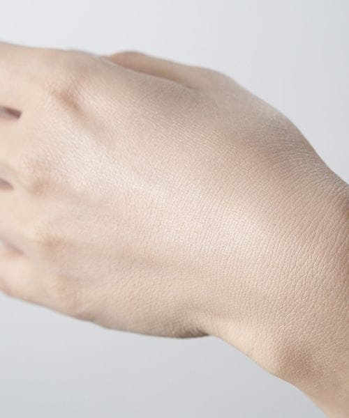 塗り広げる瞬間に美容液がみずみずしくあふれ出します。なめらかにのびてピタッと密着。