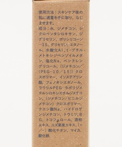 【全成分】 水 ジメチコン シクロペンタシロキサン ジグリセリン ポリシリコーン-15 グリセリン エタノール 水酸化Al t-ブチルメトキシジベンゾイルメタン 塩化Na ペンチレングリコール (ジメチコン (PEG-10/ 15))クロスポリマー イソステアリン酸 フェノキシエタノール ラウリルPEG-9ポリジメチルシロキシエチルジメチコン (ジメチコン ビニルジメチコン)クロスポリマー クエン酸Na ハイドロゲンジメチコン トウミツ BG トコフェロール 酒粕エキス ユズ果実エキス