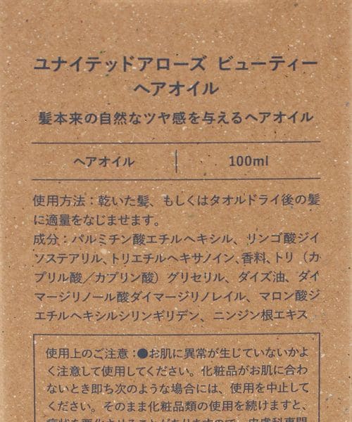 【使用方法】 アウトバスオイルとしてご使用の場合は、乾いた髪、もしくはタオルドライ後の毛髪に適量をなじませます。 根元につけすぎると重い印象になりますので、先に毛先を中心に塗布し、手のひらに残った分を根元になじませて下さい。 お肌にご使用の場合は、気になる部分に適量をよくなじませてお使いください。