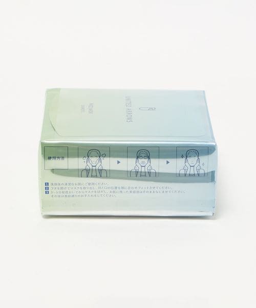 2 フタを開けてマスクを取り出し、目と口の位置を顔に合わせフィットさせてください。