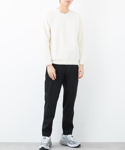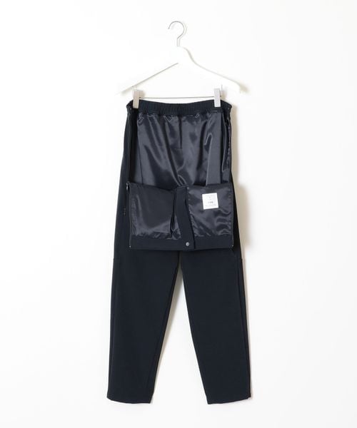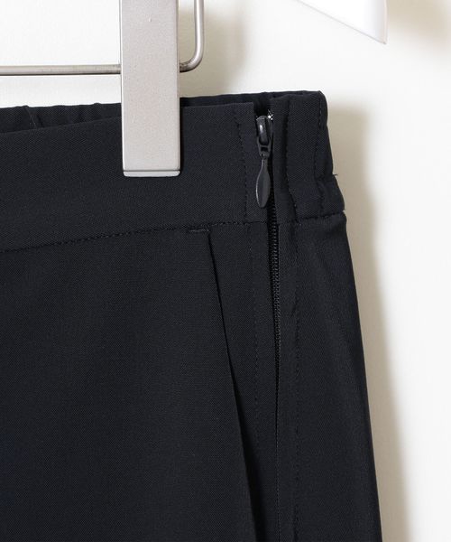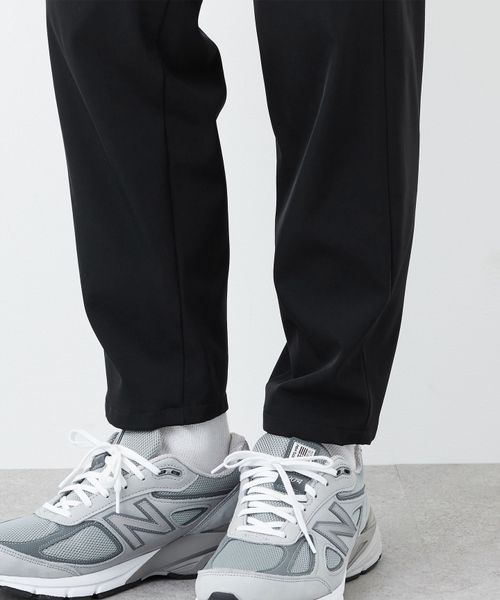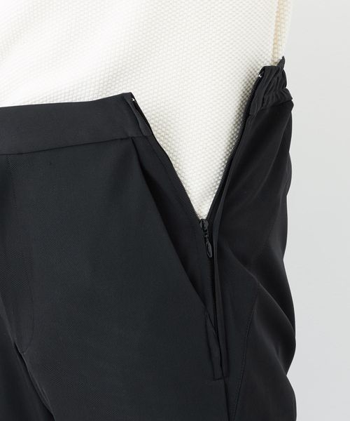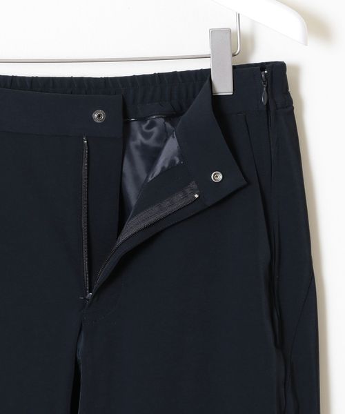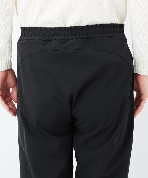 表地、裏地共に伸縮性のある素材を使用した、テーパードシルエットのパンツ。