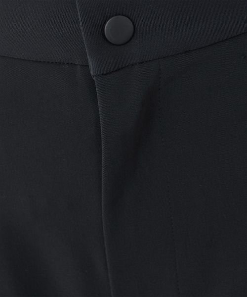 座った時にもきれいなシルエットが出るよう、裾をやや前下がりにしているほか、シームのもも部分に隠しポケットがあります。