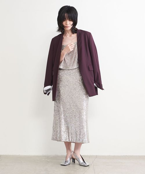オーバーサイズのトップスとあわせて、裾からちらりとスパンコールをのぞかせるのも素敵です。