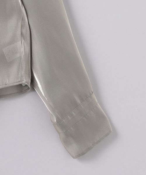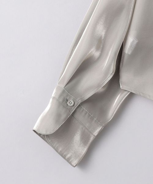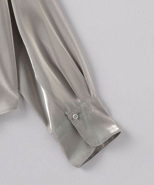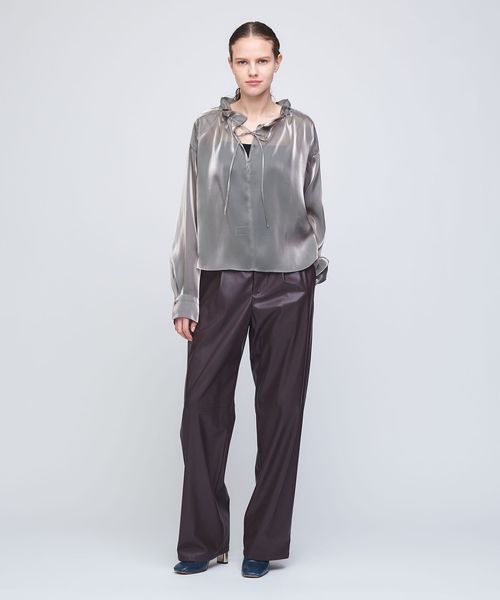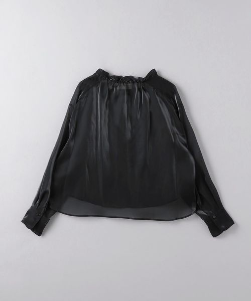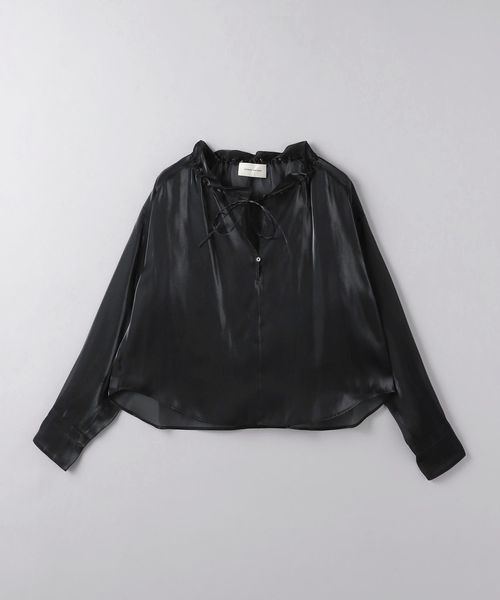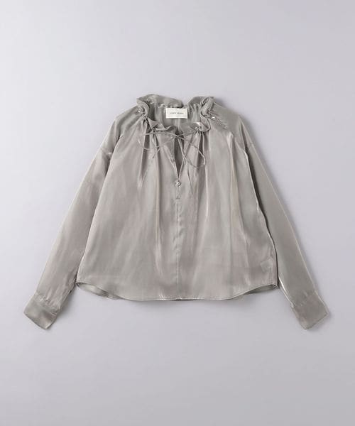 シアー感と光沢が華やかなギャザーリボンブラウス