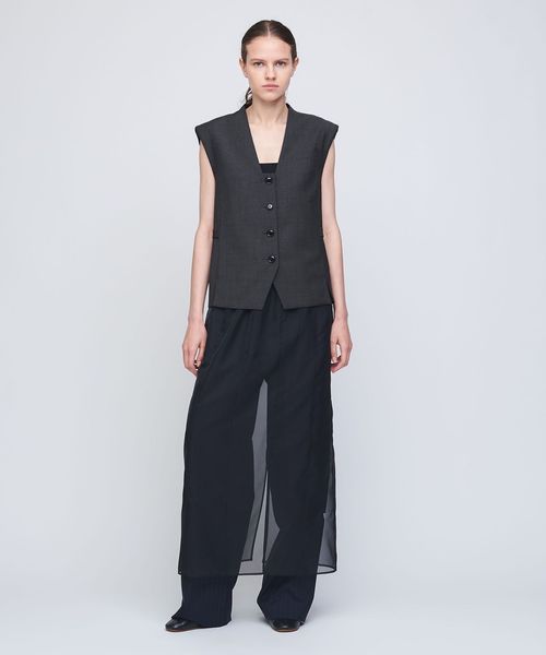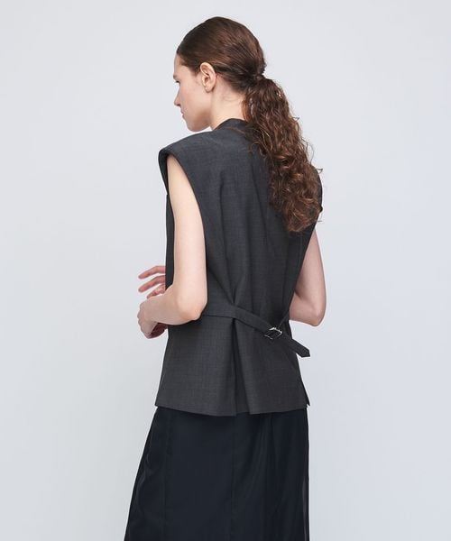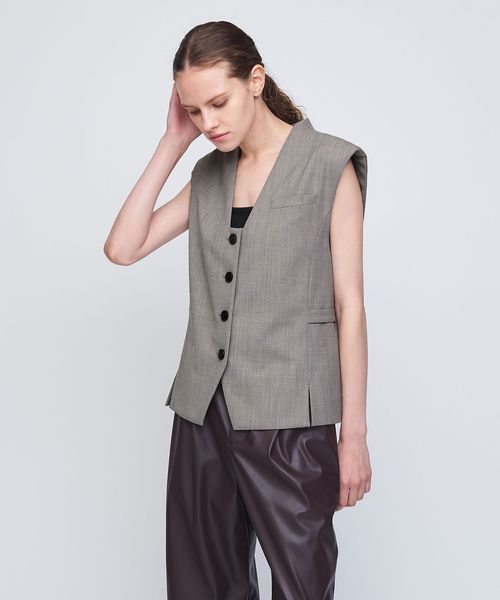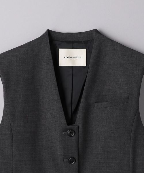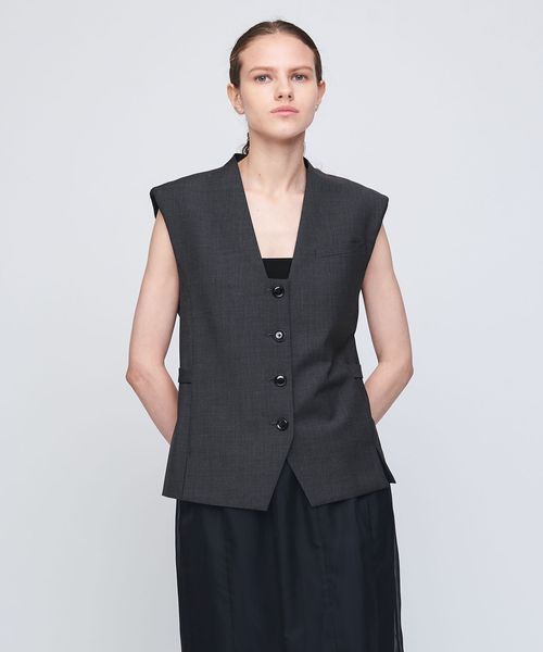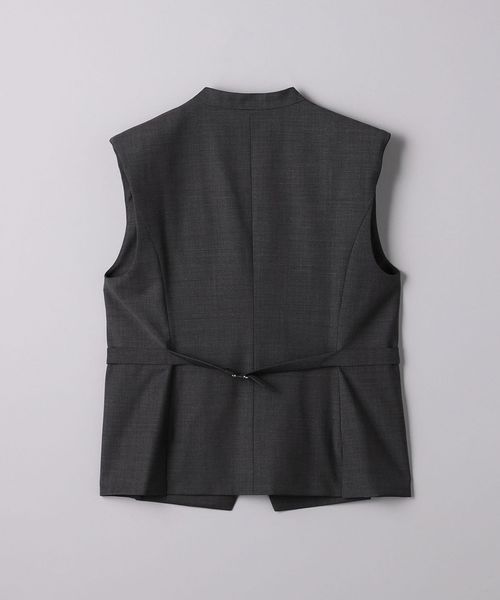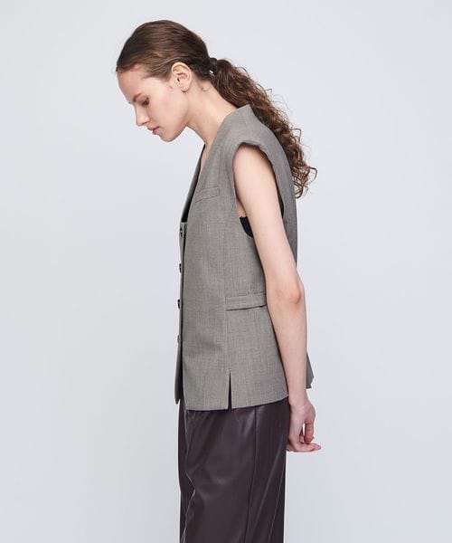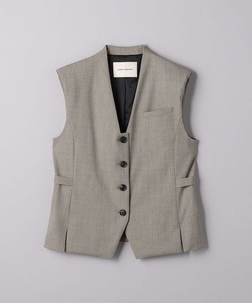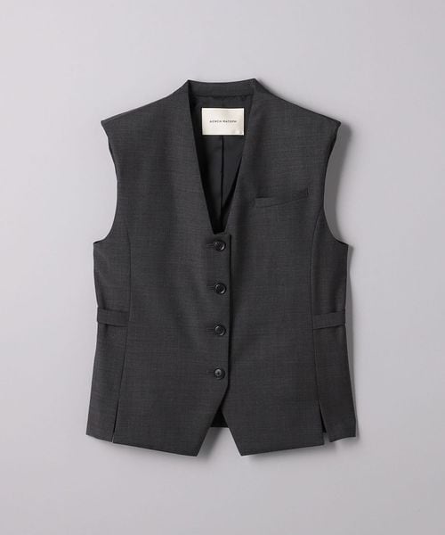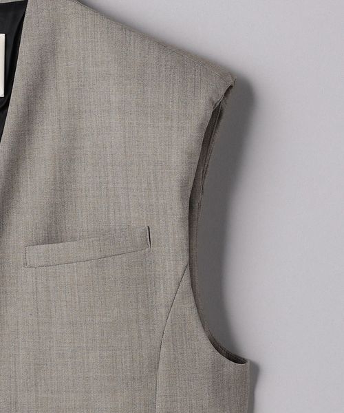 前立てへ続くVネックのラインがすっきりとした印象を演出する、コンパクトなサイズ感のベスト。