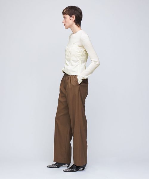 一枚でこなれ感のあるコンビトップスは、きれいめなスラックスとも、カジュアルなデニムとも相性良く着まわせます。