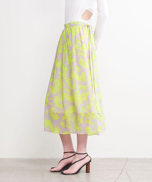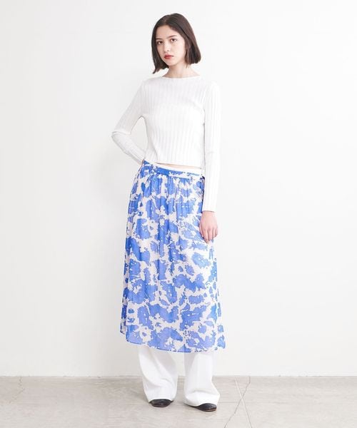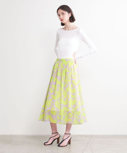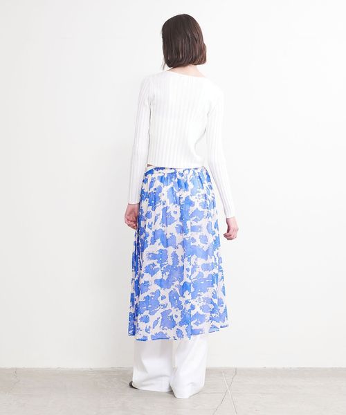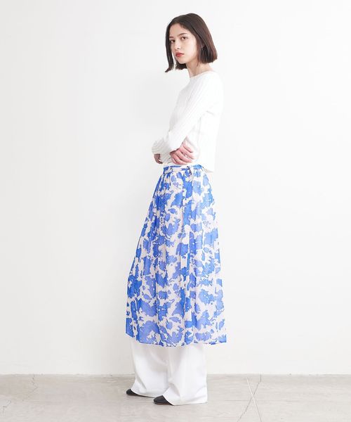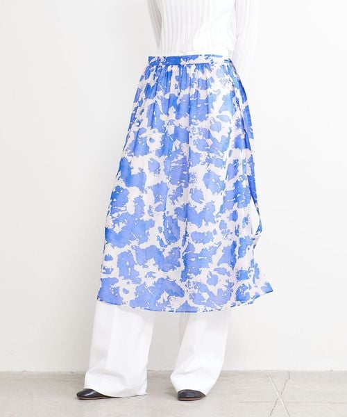 軽やかな着こなしを演出してくれるプリント柄が目を引くシアースカート。