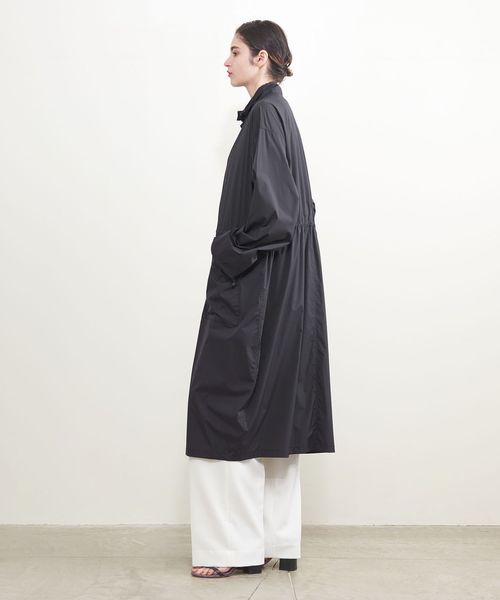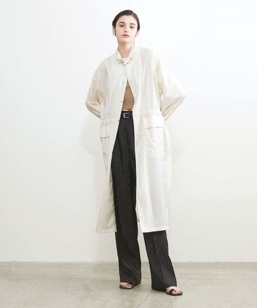 軽やかなナイロンタフタのメンズライクなスタンドカラーコート。
