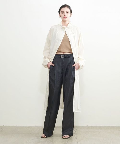 軽やかなナイロンタフタのメンズライクなスタンドカラーコート。