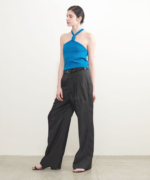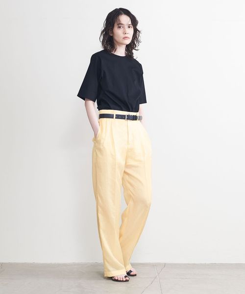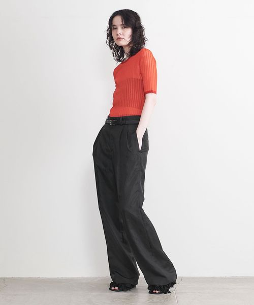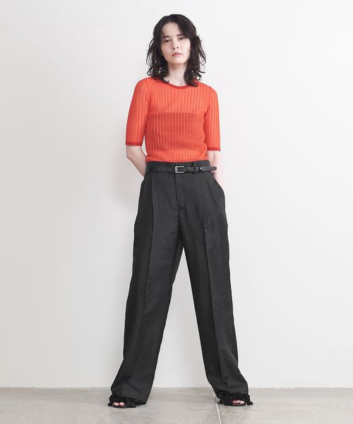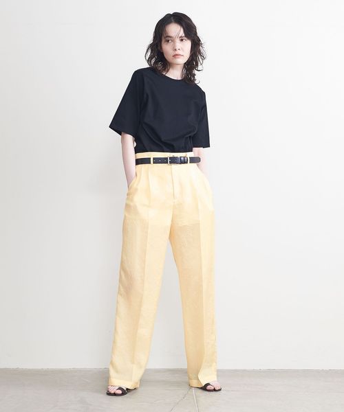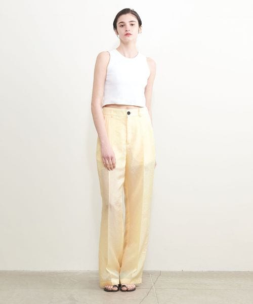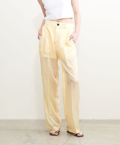 軽やかな印象のシアー素材のタックワイドパンツ。