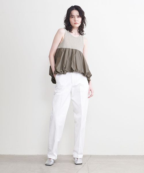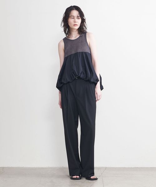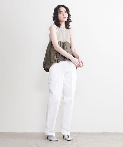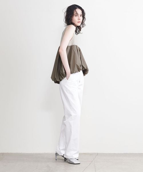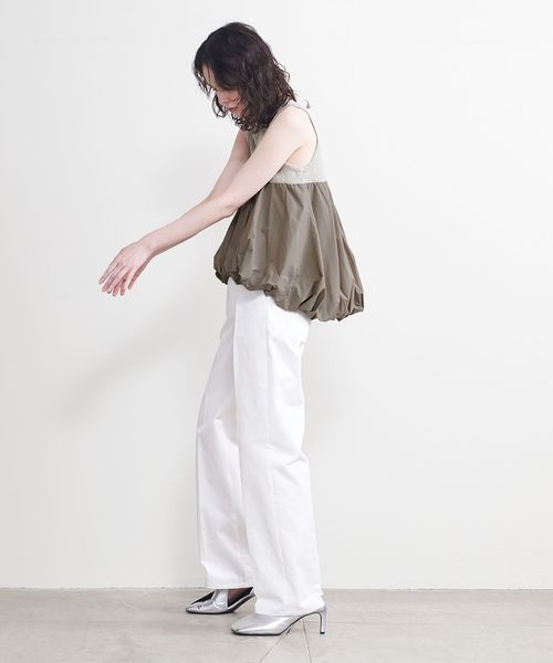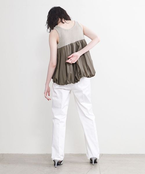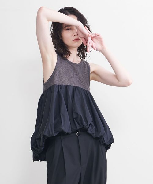 ふんわりと広がるバルーンシルエットが特徴的なノースリーブトップス
