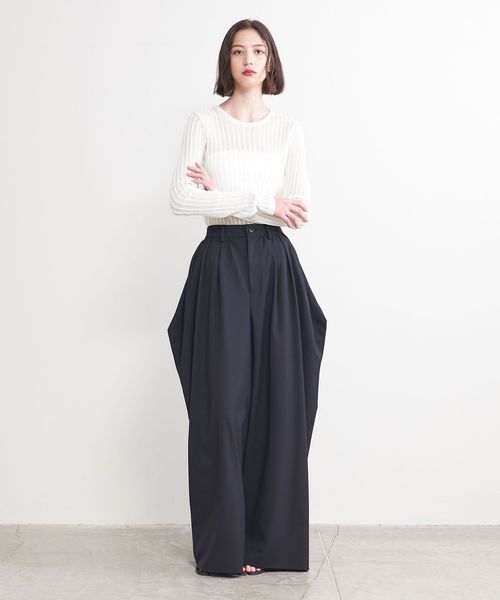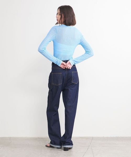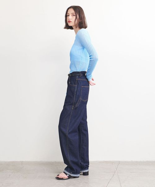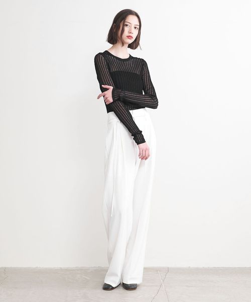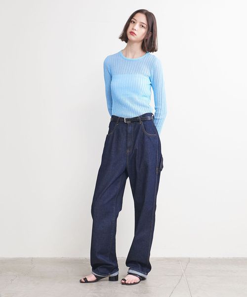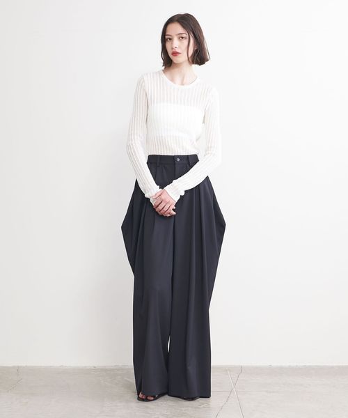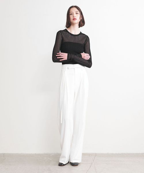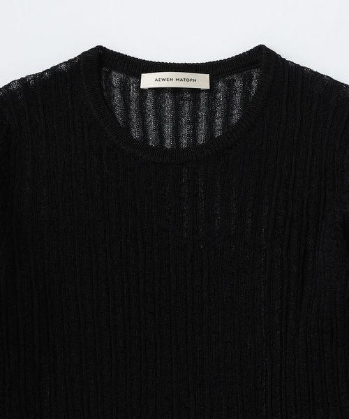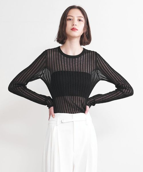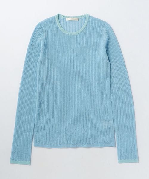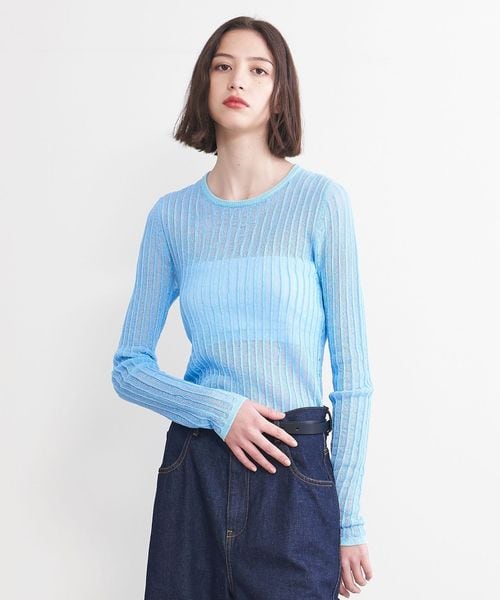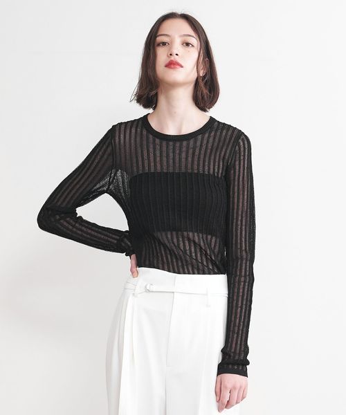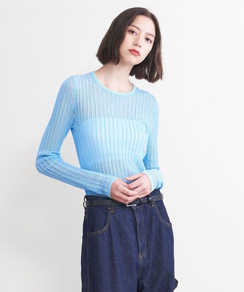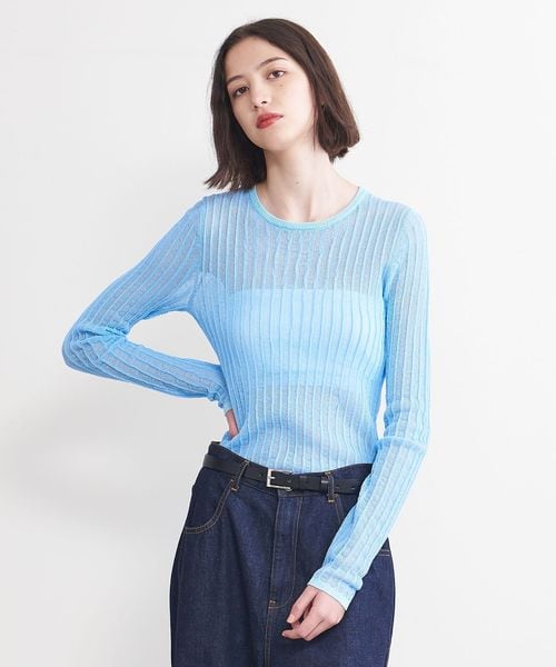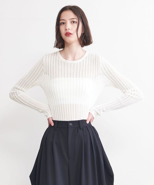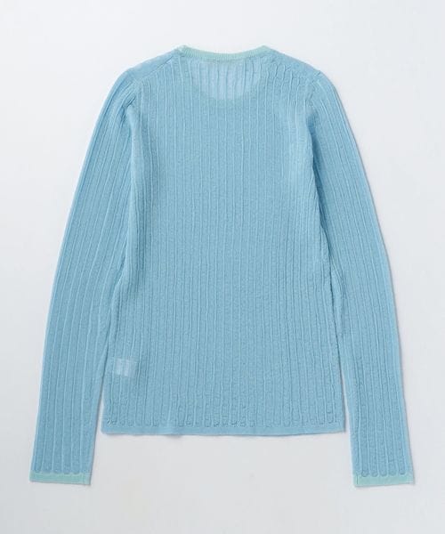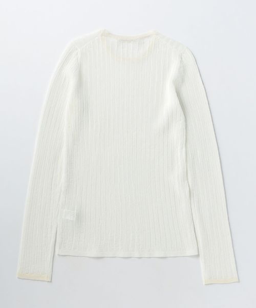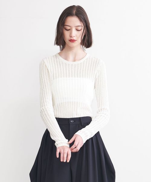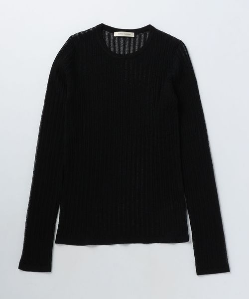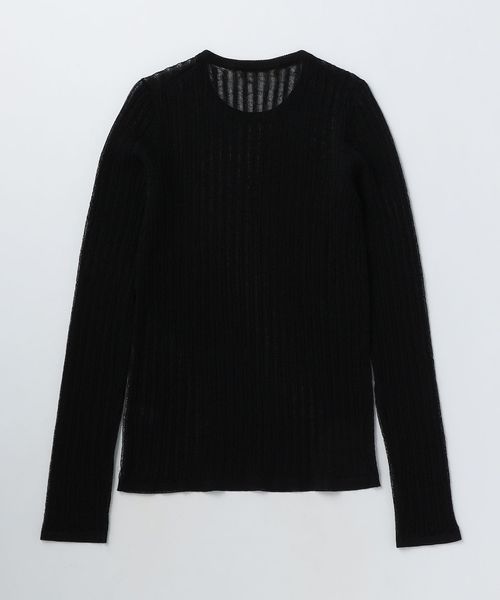 シアー感のあるリブ編みのクルーネックニット。