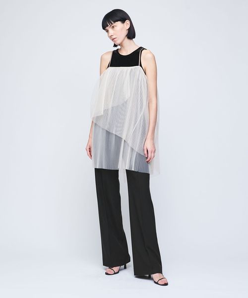 ミニマルなチュニックや、ボリュームのあるドルマンシャツなど、様々なトップスと相性の良いパンツ。