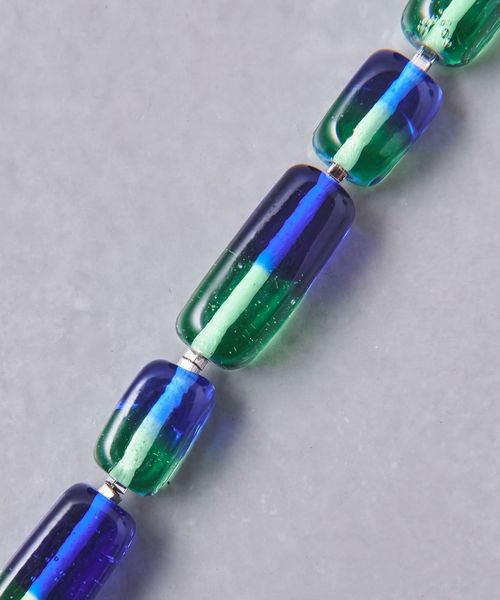 「佐竹ガラス」のデッドストックのガラスビーズを使用。