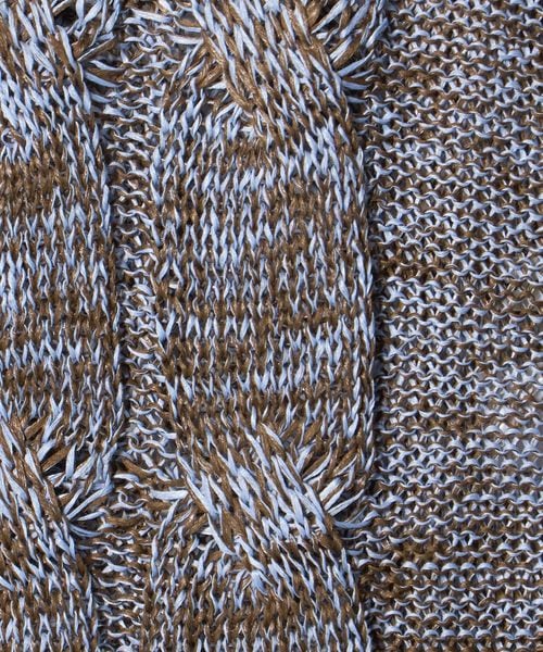 ざっくりとした大きめのケーブル編みと、ミックスカラーが目を引くアメリカンスリーブニット。