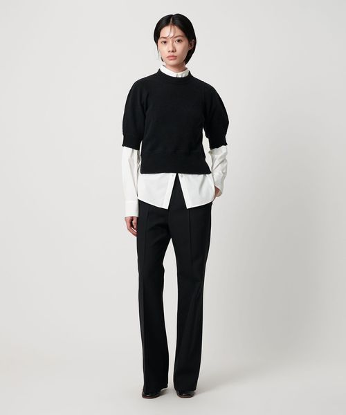 すっきりとした細身のパンツとのスタイリングが新鮮で好相性。