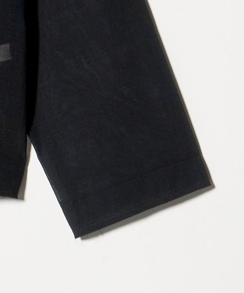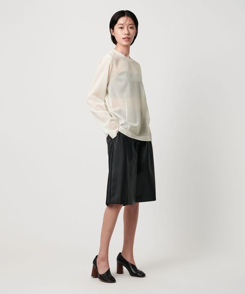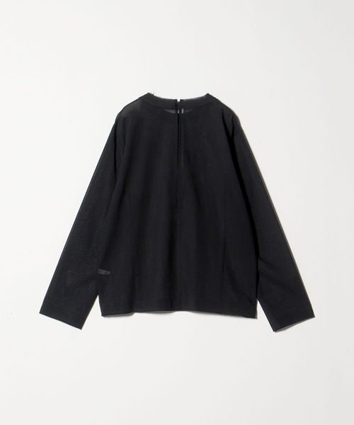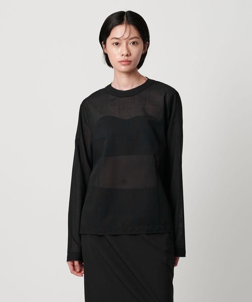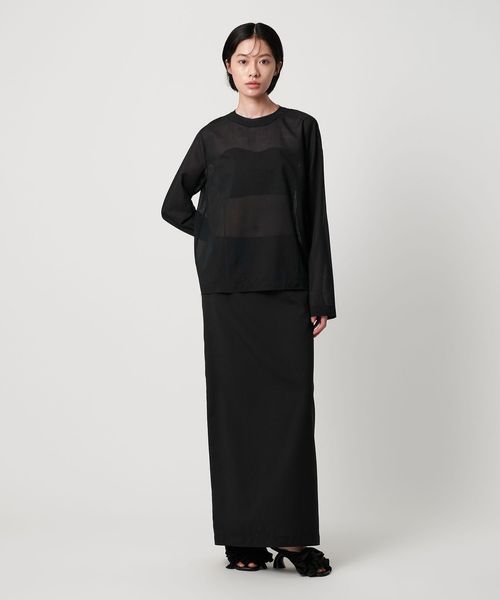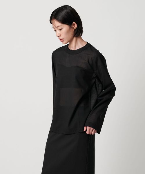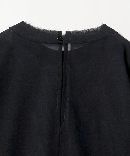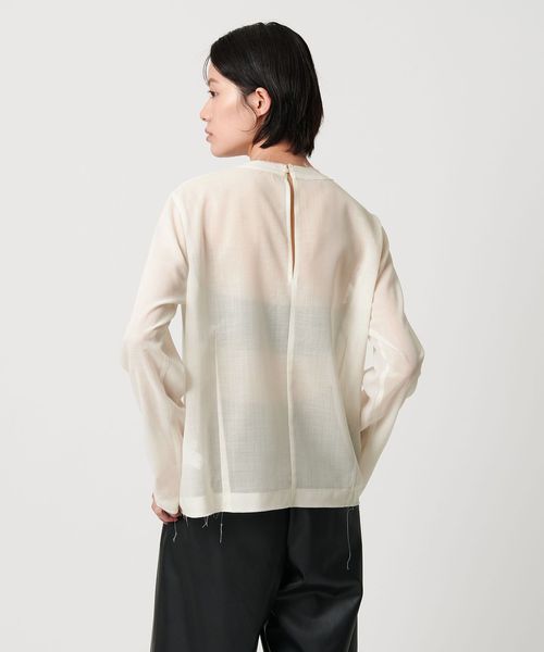 シアー素材ならではの濃淡を活かした長めのウエストダーツや、袖口と裾の太めの見返しがアクセントに。
