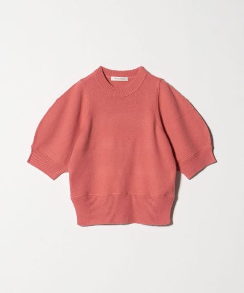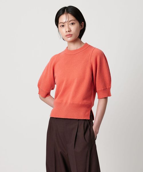 ボリュームのある袖シルエットがポイントの5分袖ニットトップス。
