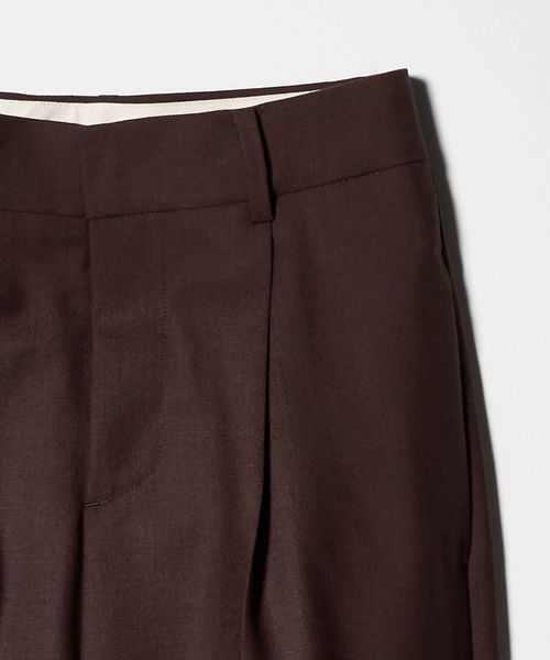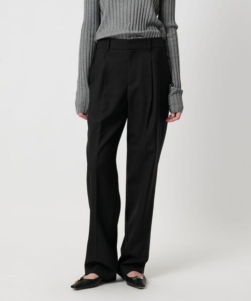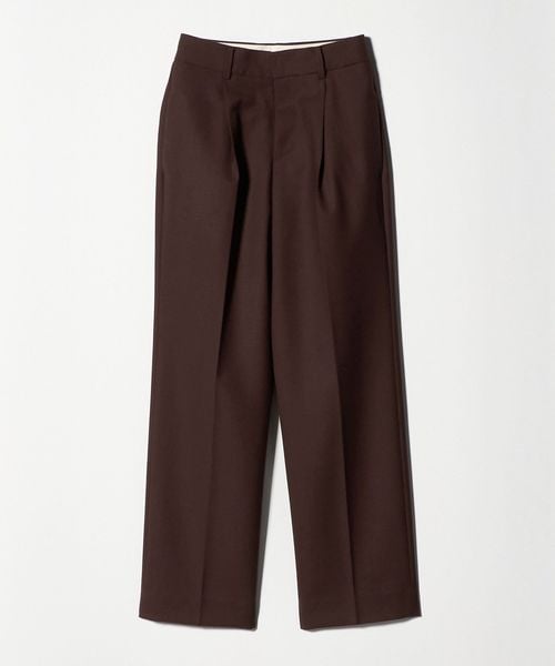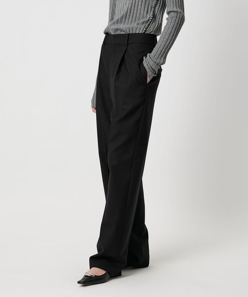 ウエストワンタックのメンズライクなウール素材のストレートパンツ。