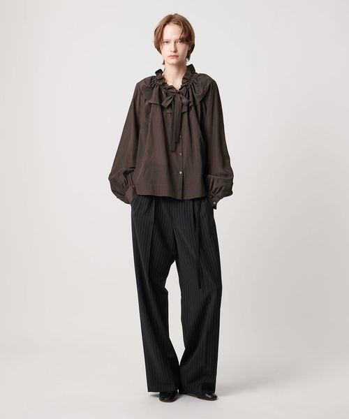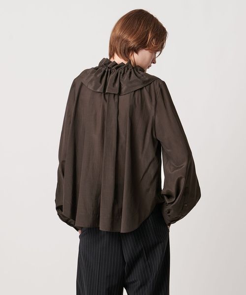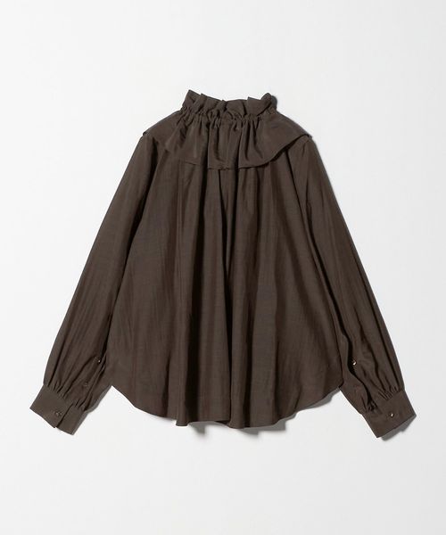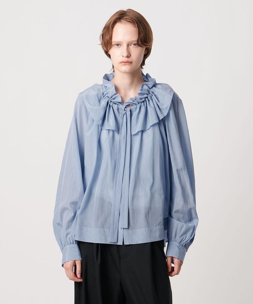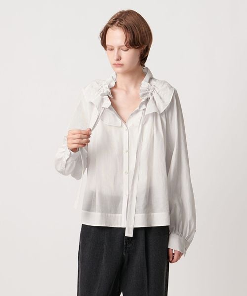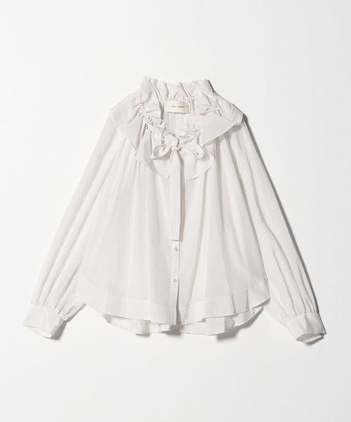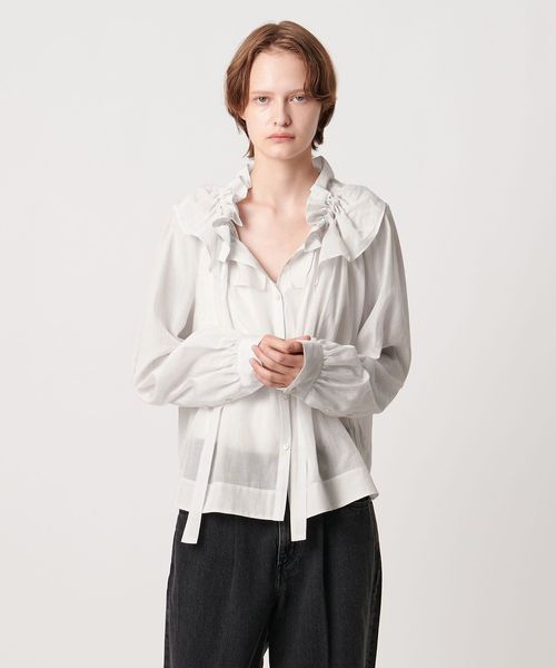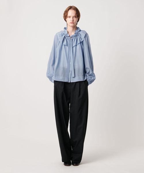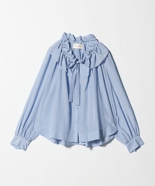 たっぷりとした軽やかなボリューム感と、肩にかかる華やかなフリルが魅力のブラウス。