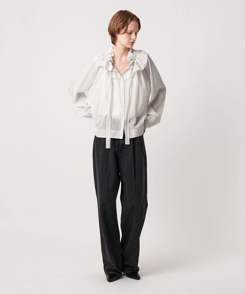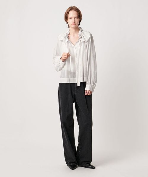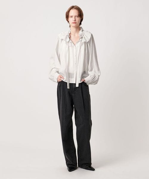 着るだけで目をひくフェミニンなトップスは、マニッシュなボトムやデニムが好相性。