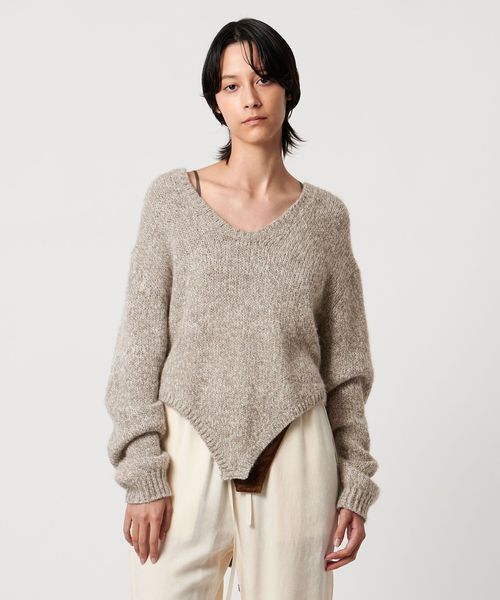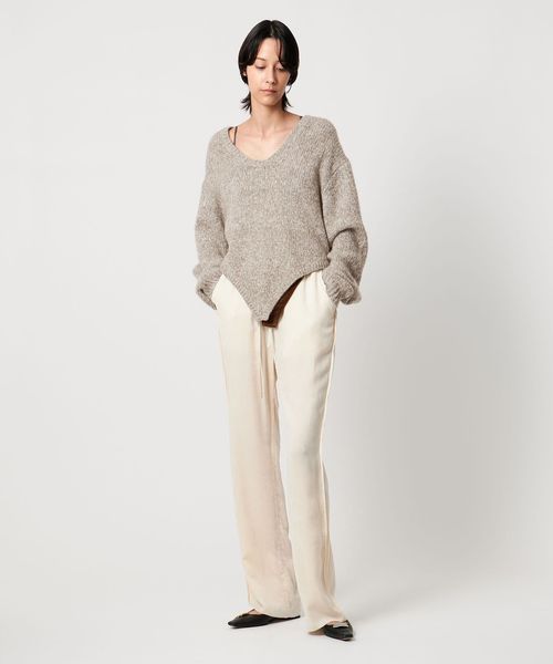 ゆったりとした、リラックスムード漂うサイズ感が魅力の、ロンパース型ニットプルオーバー。
