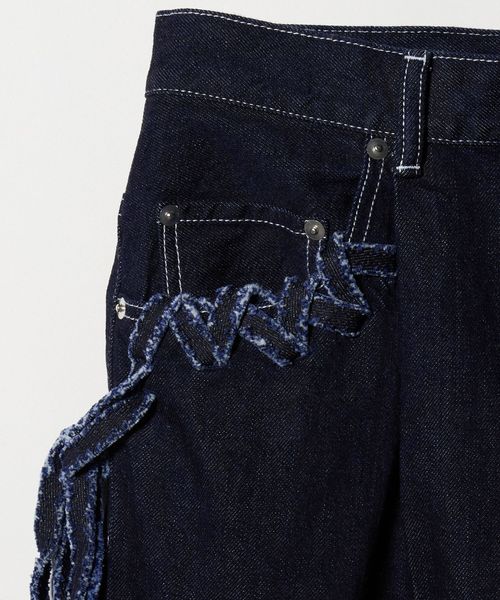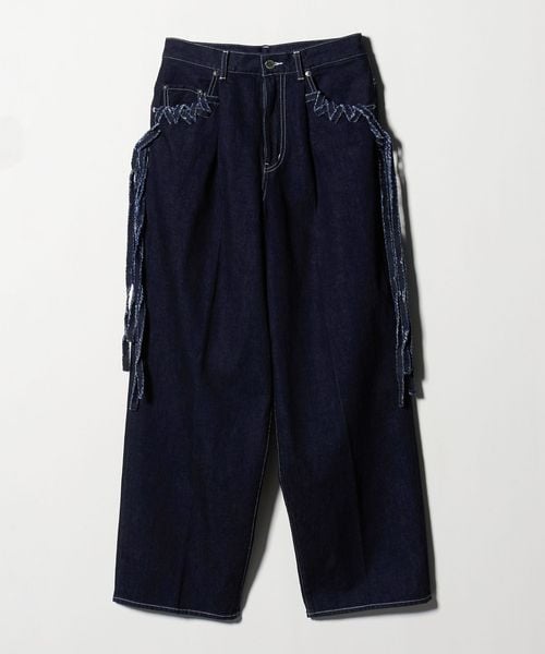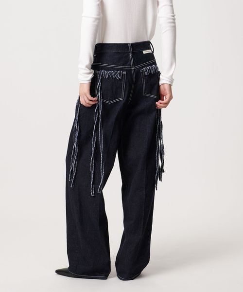 動くだけで目をひく、テープフリンジのデニムパンツ