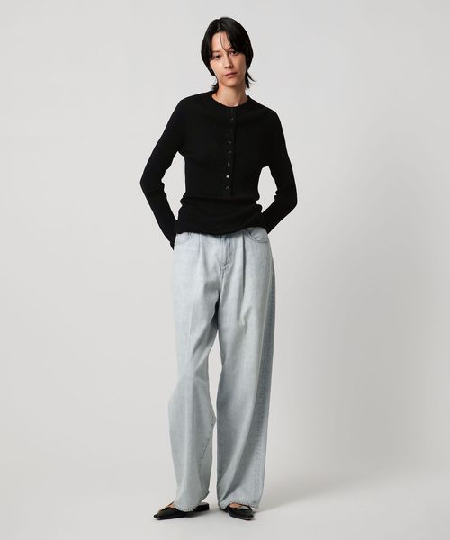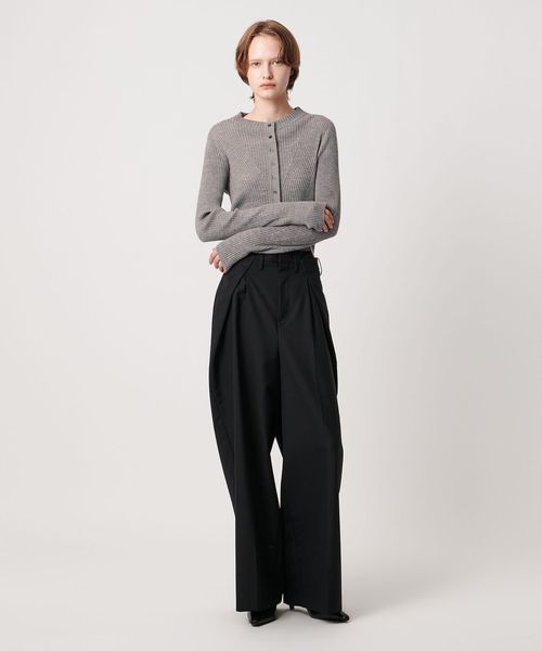 シンプルにワイドパンツと合わせたモードなスタイリングから、スカートと合わせたフェミニンなコーディネートまで幅広くマッチ。