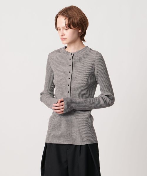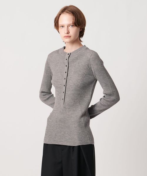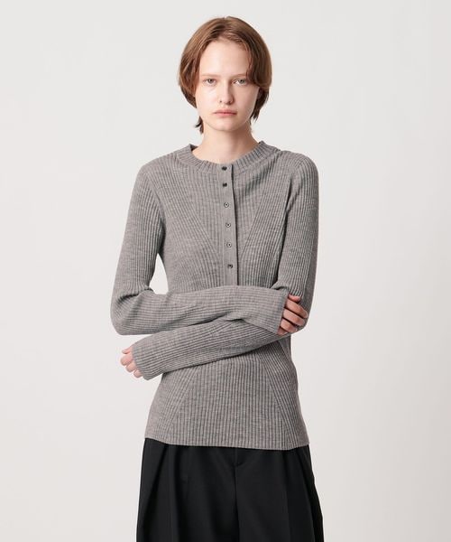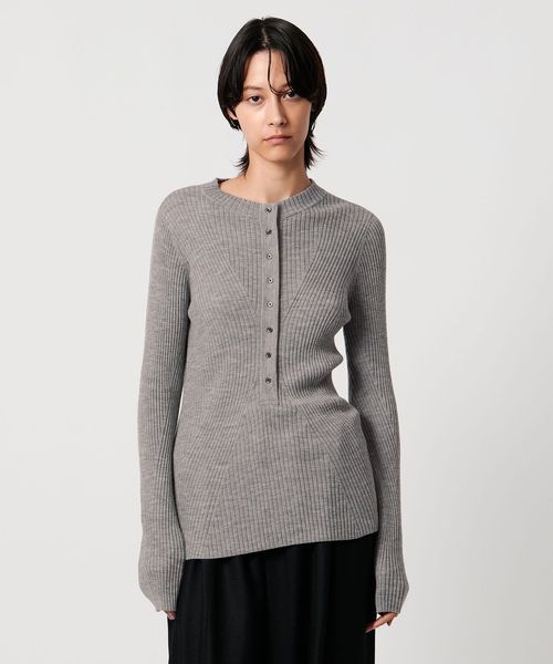 <AEWEN MATOPH>ウールリブヘンリーネック ニットプルオーバー