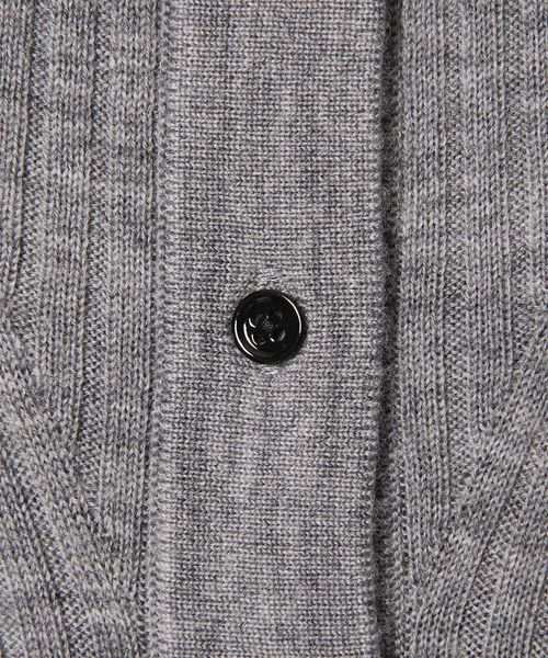 身頃と袖に施した大胆な編み柄は、身体のラインを美しく見せ、デザインアクセントとしても効果を発揮。
