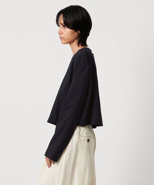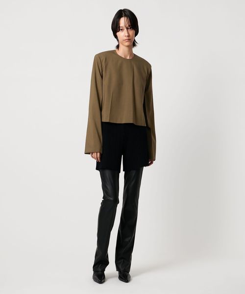 短めの着丈でバランスがとりやすく、きれいめにもカジュアルにも着こなせるアイテム。